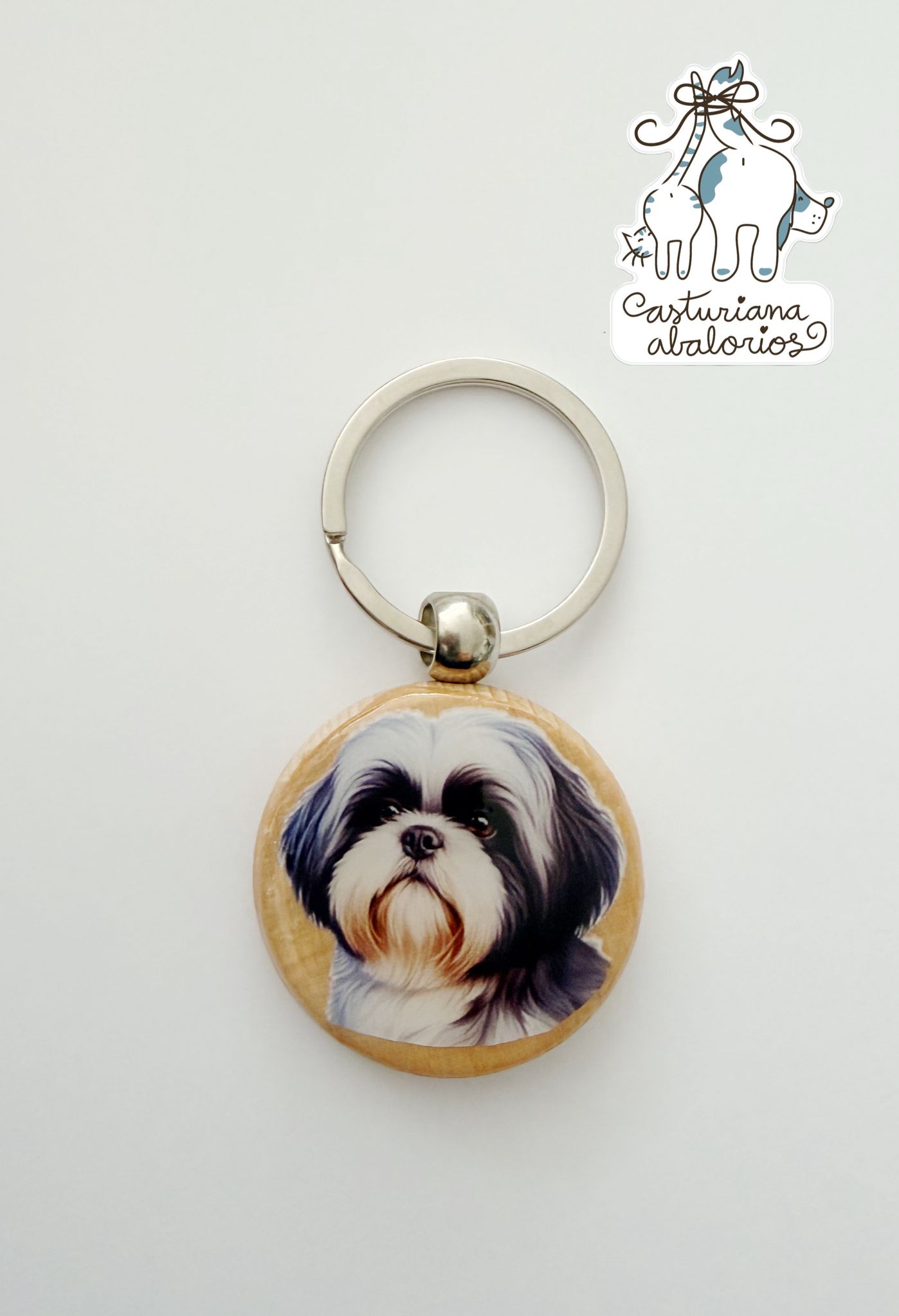 Llavero de madera resistente con serigrafía de SHIHTZU y resina.