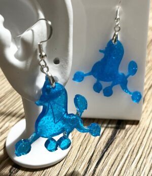 Pendientes hechos a mano en resina azul con purpurina, con una huella holográfica en su interior. Gancho de plata. Únicos y preciosos además de originales!